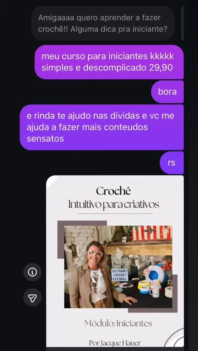 Quer aprender crochetar de forma rapida e fácil… ta saindo o jeito Jac de ser… sem frescura e com muito afeto e tecnica…